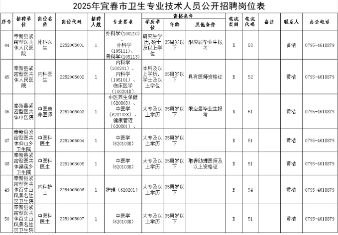 本次宜春市事業(yè)單位招聘計劃共311名,具體招聘崗位及要求詳見《2025年宜春市事業(yè)單位公開招聘工作人員崗位表》(附件1)、《2025年宜春市衛(wèi)生專業(yè)技術(shù)人員公開招聘崗位表》(附件2)。
