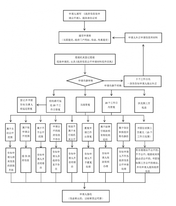 行政機關收到政府信息公開申請,能夠當場答復的,應當當場予以答復。行政機關不能當場答復的,應當自收到申請之日起20個工作日內予以答復;需要延長答復期限的,應當經政府信息公開工作機構負責人同意并告知申請人,延長的期限最長不得超過20個工作日。行政機關征求第三方和其他機關意見所需時間不計算在前款規定的期限內。