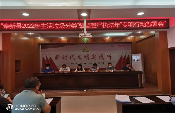 2022年5月25日,奉新縣城市管理局會同縣住建局、縣社區管委會組織召開奉新縣2022年生活垃圾分類“強監管嚴執法年”專項行動部署會議,全面部署2022年生活垃圾分類專項執法工作。城管局、住建局、社區管委會分管領導和業務負責同志,城管大隊執法中隊負責同志,17個社區垃圾分類專職管理干部,物業企業代表,垃圾分類運行企業負責人等60余人參加會議。