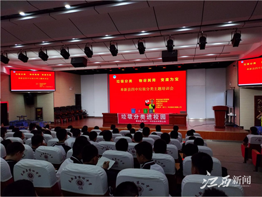 為推動(dòng)垃圾分類工作,守好校園宣傳教育“陣地”,蔚復(fù)來奉新項(xiàng)目組在奉新縣城市管理局、奉新縣生活垃圾分類工作小組的領(lǐng)導(dǎo)下,以分類培訓(xùn)為抓手,立足常態(tài)分類教學(xué),打造垃圾分類趣味課堂,不斷增強(qiáng)奉新縣全體師生垃圾分類意識(shí)。為深入開展垃圾分類宣傳工作,近日,奉新縣城市管理局、奉新縣生活垃圾分類工作小組聯(lián)合共青團(tuán)奉新縣委、文峰社區(qū)、奉新四中及蔚復(fù)來奉新項(xiàng)目組在奉新四中開展了“垃圾分類‘凈’校園 綠色生活入人心”垃圾分類主題講座。