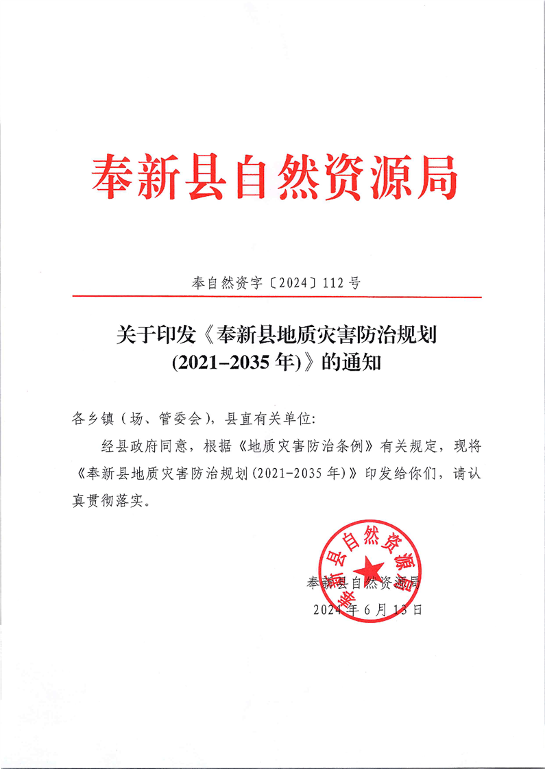 奉新縣自然資源局關(guān)于印發(fā)《宜春市地質(zhì)災(zāi)害防治規(guī)劃(2021-2035年)》的通知