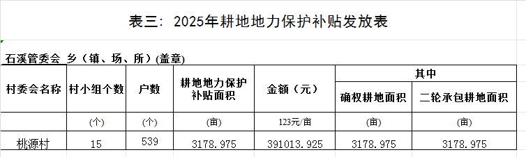 【耕地補貼】石溪管委會桃源村2025年耕地地力保護補貼發放表