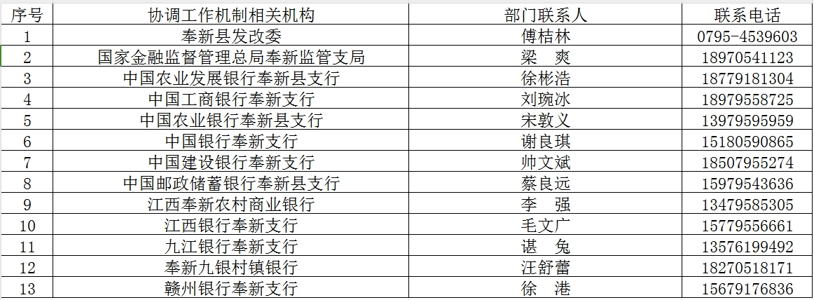 建立奉新縣支持小微企業融資協調工作機制,成立工作專班,依托政銀企合作對接機制,主動深入園區、社區、鄉村,全面摸排小微企業、農村合作社、家庭農場等經營主體的經營情況和融資需求,引導銀企供需對接。近期,我縣各單位、各鄉鎮、各銀行機構等工作人員將通過電話溝通、實地走訪等多種方式,精準開展對接摸排工作,梳理融資需求,請廣大市場主體負責人積極配合,大力支持與協助。在走訪中同時接受個體工商戶融資需求登記。