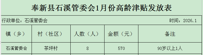 【高齡津貼】石溪管委會2026年1月份高齡津貼發放表