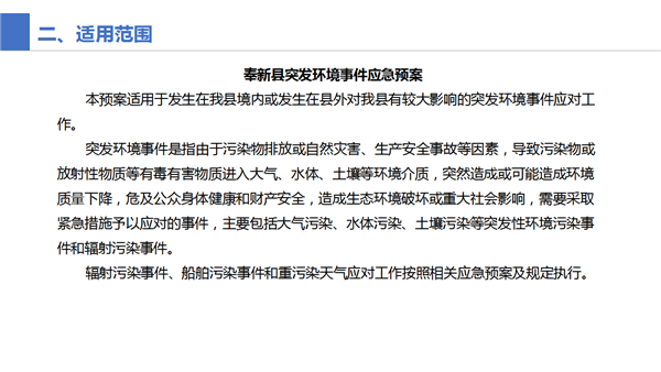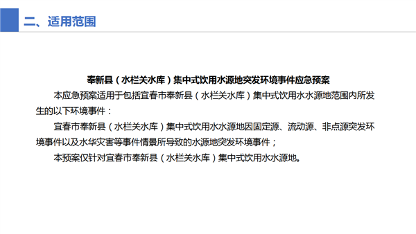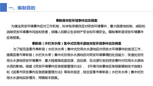奉新縣突發環境事件應急預案、奉新縣(水欄關水庫)集中式飲用水源地突發環境事件應急預案政策解讀