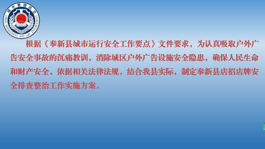 解讀:奉新縣店招店牌安全排查整治工作實施方案政策解讀