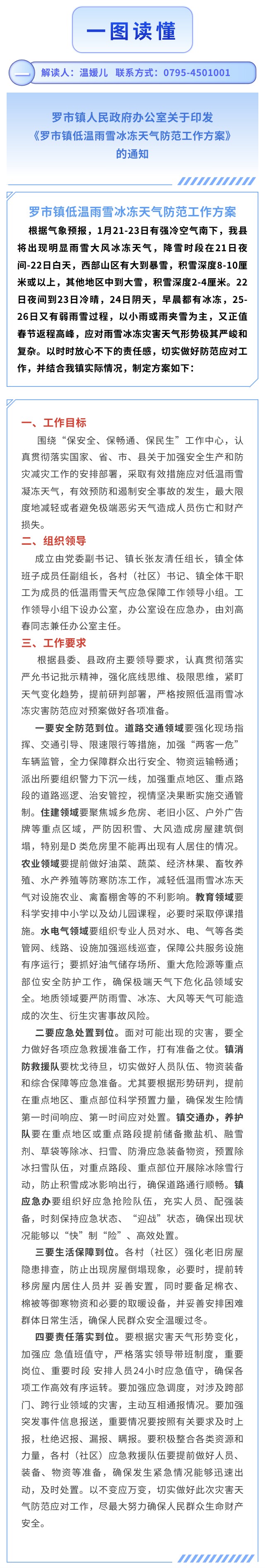 【圖文解讀】羅市鎮人民政府辦公室關于印發《羅市鎮低溫雨雪冰凍天氣防范工作方案》的通知
