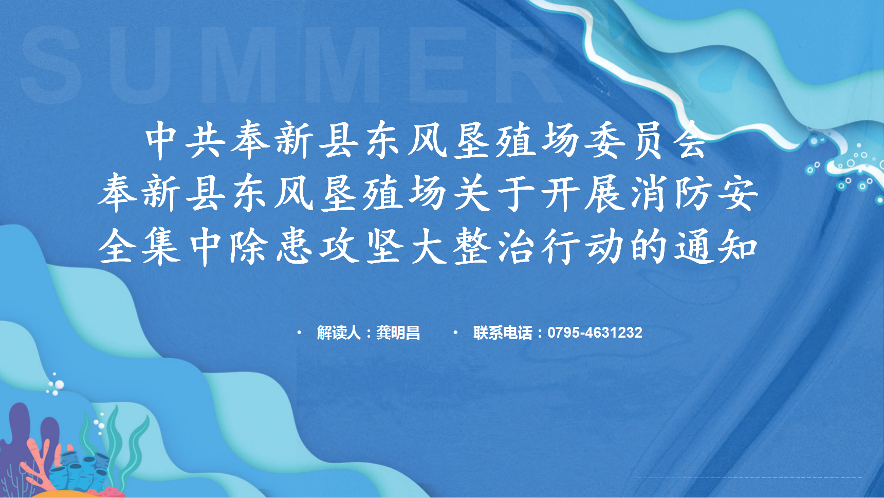 【圖文解讀】中共奉新縣東風墾殖場委員會 奉新縣東風墾殖場關(guān)于開展消防安全集中除患攻堅大整治行動的通知