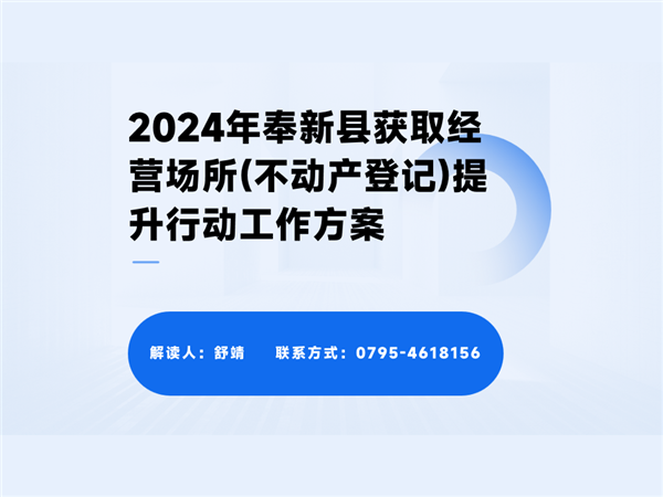 圖文解讀:2024年奉新縣獲取經營場所(不動產登記)提升行動工作方案