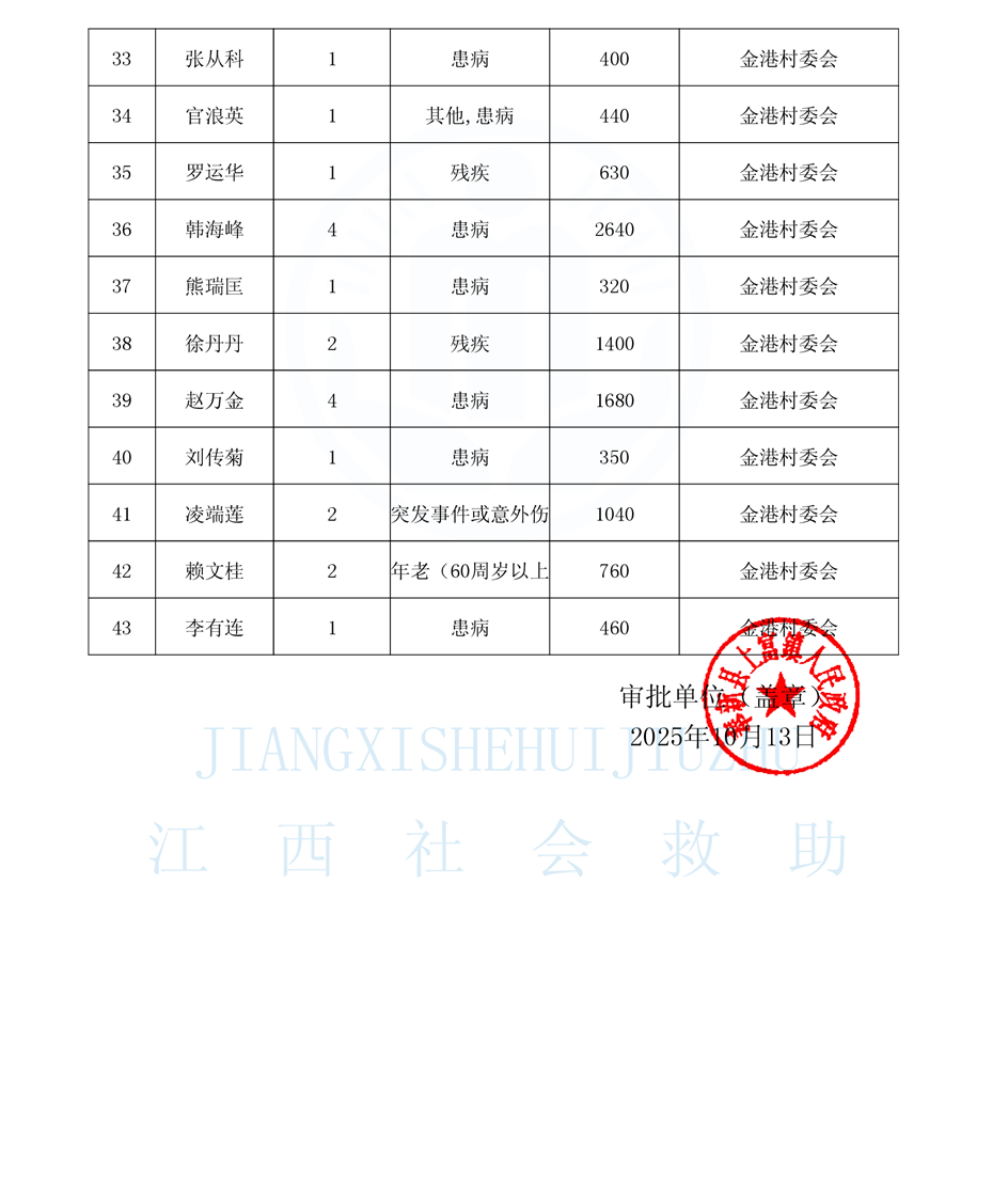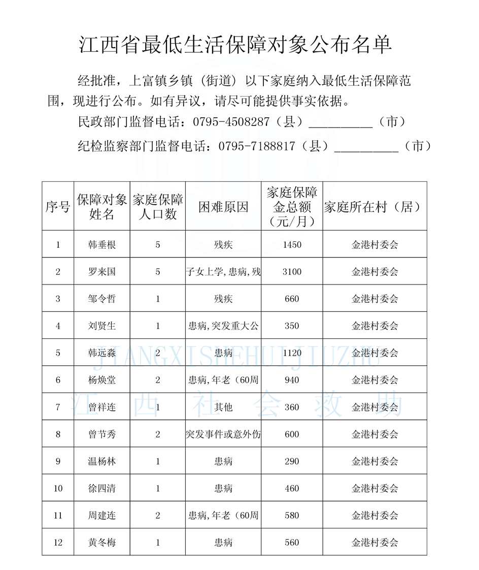 【社會救助】2025年10月份上富鎮農村低保發放標準和名單