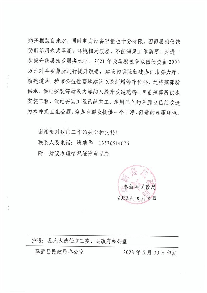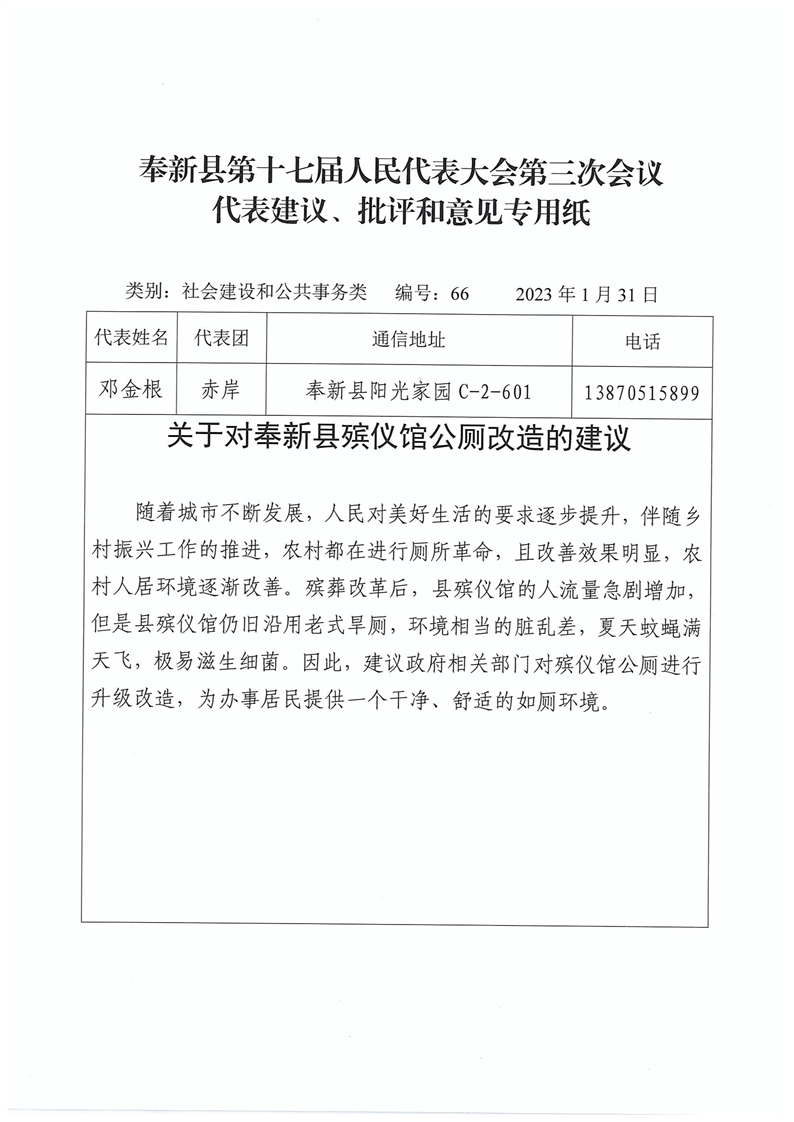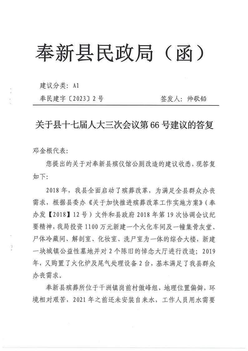 奉新縣民政局關于縣十七屆人大第三次會議第66號建議的答復