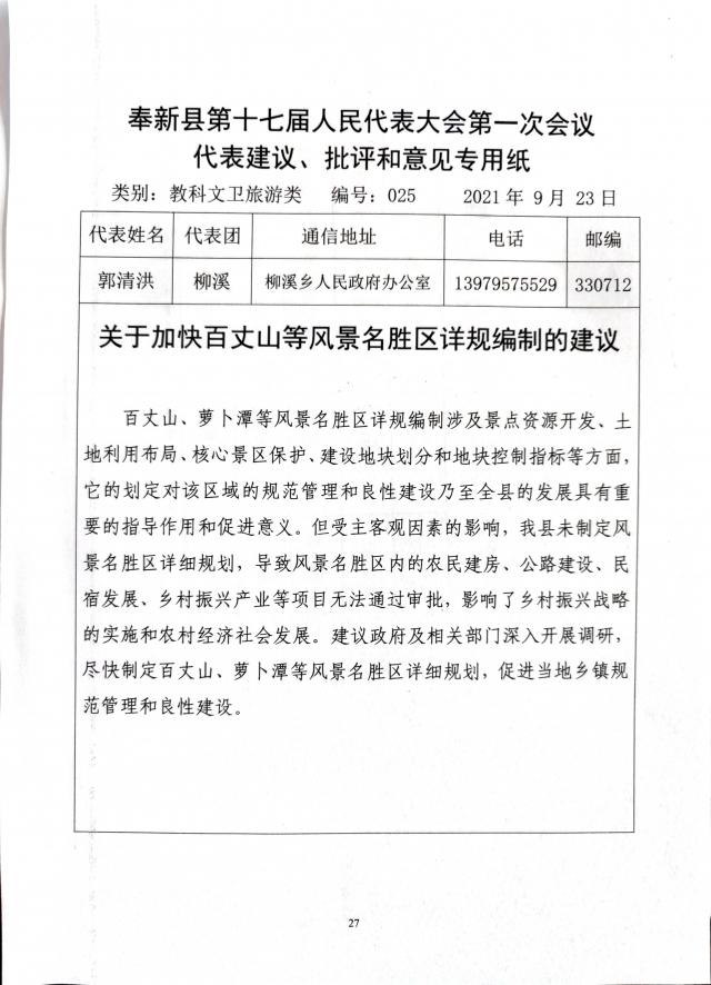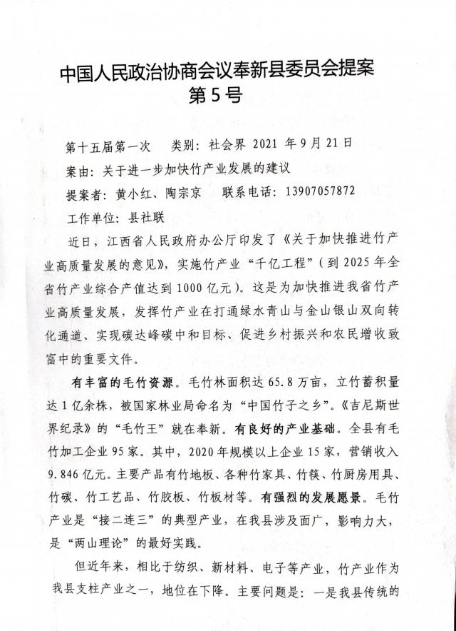 中國人民政治協(xié)商會議奉新縣委員會提案第5號