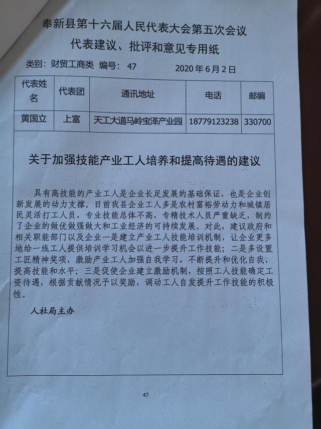 盡管我們在加強產業工人技能培養方面做了一些工作,也取得了一些進步。但誠如您所說,我縣高技能工人培養工作還存在一些不足,如專業技能總體不高、專精技術人員仍舊缺乏等突出問題,需要我們在今后的工作中加以解決。對您提出的建議意見我們將認真研究借鑒并加以吸收,運用到職業技能提升工作中。下步我們將繼續加大職業技能提升行動的資金投入、擴大職業技能培訓的宣傳和推薦、在培訓實效上下功夫,相信在我縣經濟社會發展的基礎上,在全縣人民的關心下,技能提升工作將有長足發展。