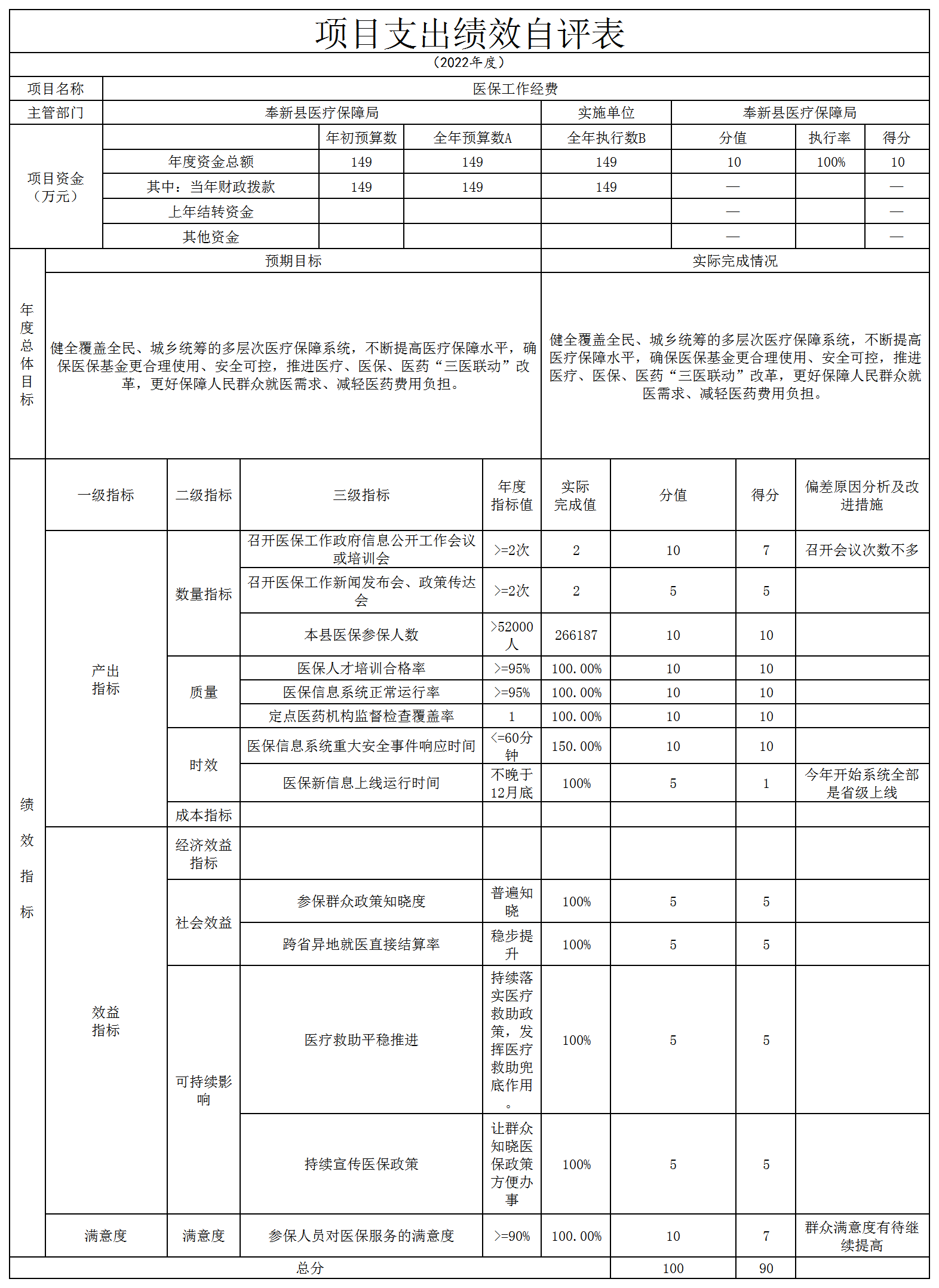 奉新縣醫(yī)療保障局部門績(jī)效自評(píng)報(bào)告