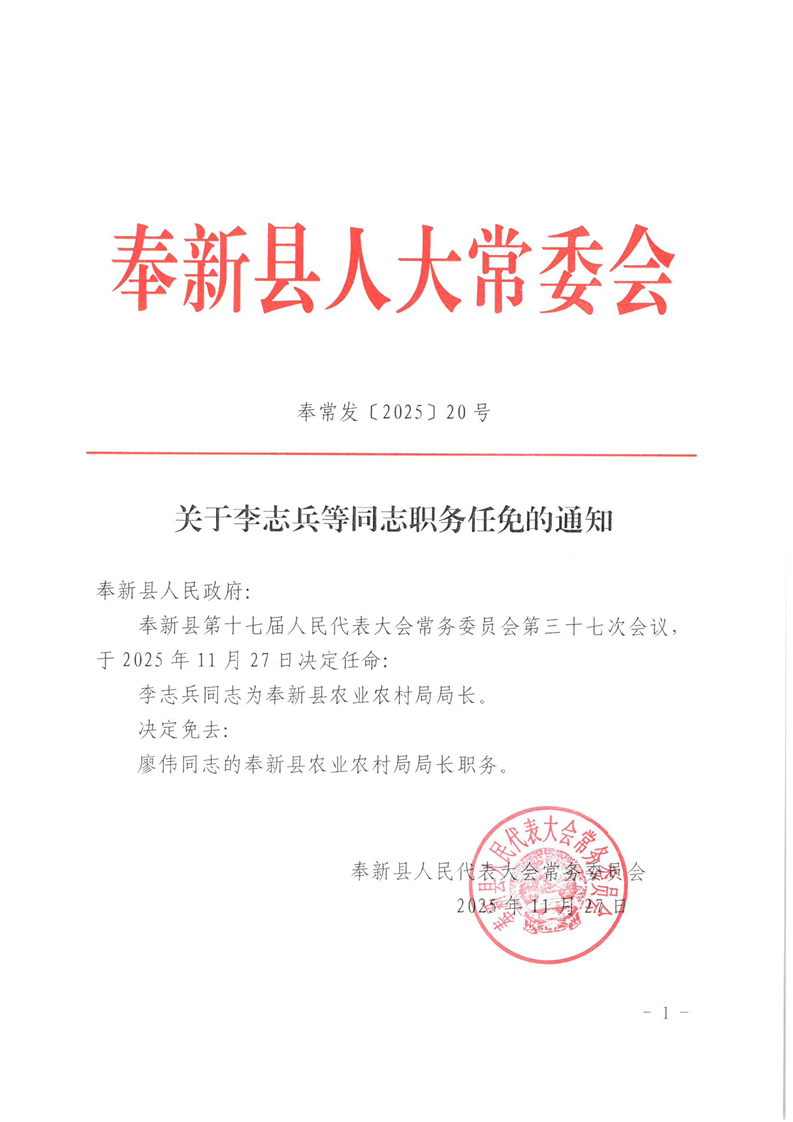您當前所在位置: 首頁>政府信息公開>政府部門信息公開>縣政府各部門信息公開目錄>縣農業農村局>法定主動公開內容>人事信息>人事任免