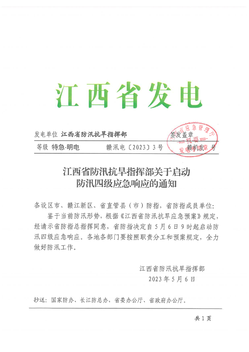 江西省防汛抗旱指揮部關于啟動防汛四級應急響應的通知(2)