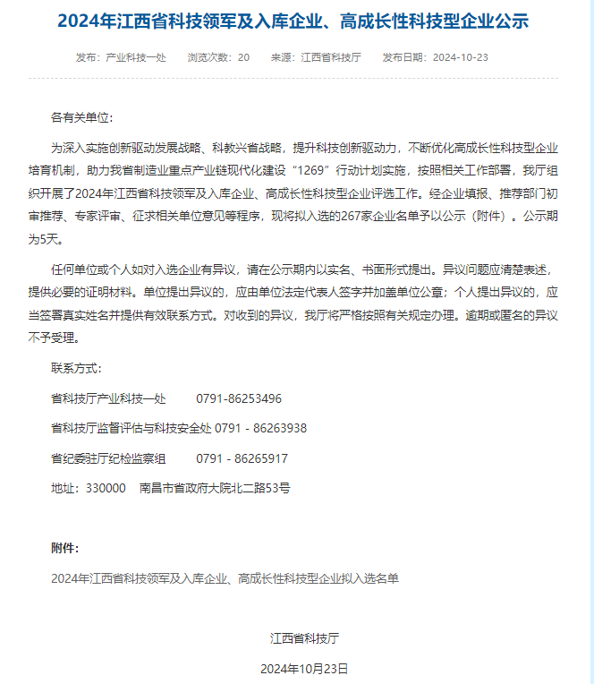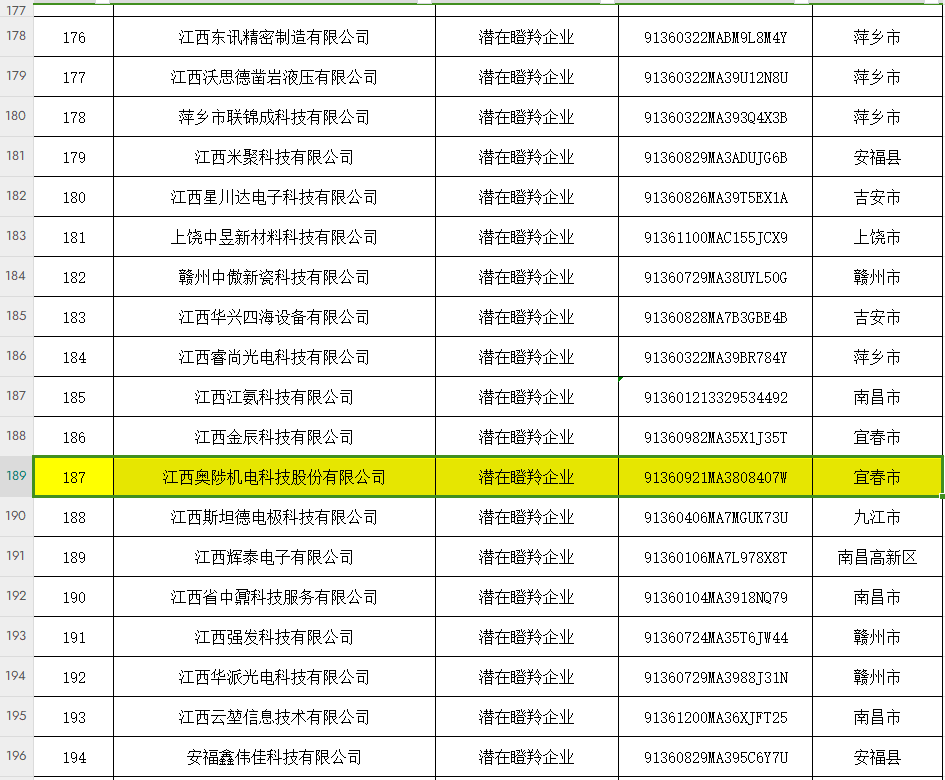 據(jù)了解,科技領(lǐng)軍企業(yè)是指立足于江西省重點產(chǎn)業(yè)發(fā)展需求,技術(shù)水平、市場份額等在一定行業(yè)范圍內(nèi)居于領(lǐng)先地位,能夠持續(xù)引領(lǐng)區(qū)域創(chuàng)新發(fā)展、創(chuàng)造經(jīng)濟(jì)價值、塑造產(chǎn)業(yè)競爭力的科技型企業(yè);科技領(lǐng)軍入庫企業(yè)是指具備一定規(guī)模體量,發(fā)展?jié)摿Υ蟆⒊砷L性較好的科技型企業(yè),是科技領(lǐng)軍企業(yè)堅實的后備軍;瞪羚企業(yè)指跨越死亡谷、進(jìn)入高速成長期的創(chuàng)新創(chuàng)業(yè)企業(yè),也被稱為高成長企業(yè);潛在瞪羚企業(yè)指發(fā)展迅速,有希望快速成為瞪羚企業(yè)的創(chuàng)新型科技企業(yè)。