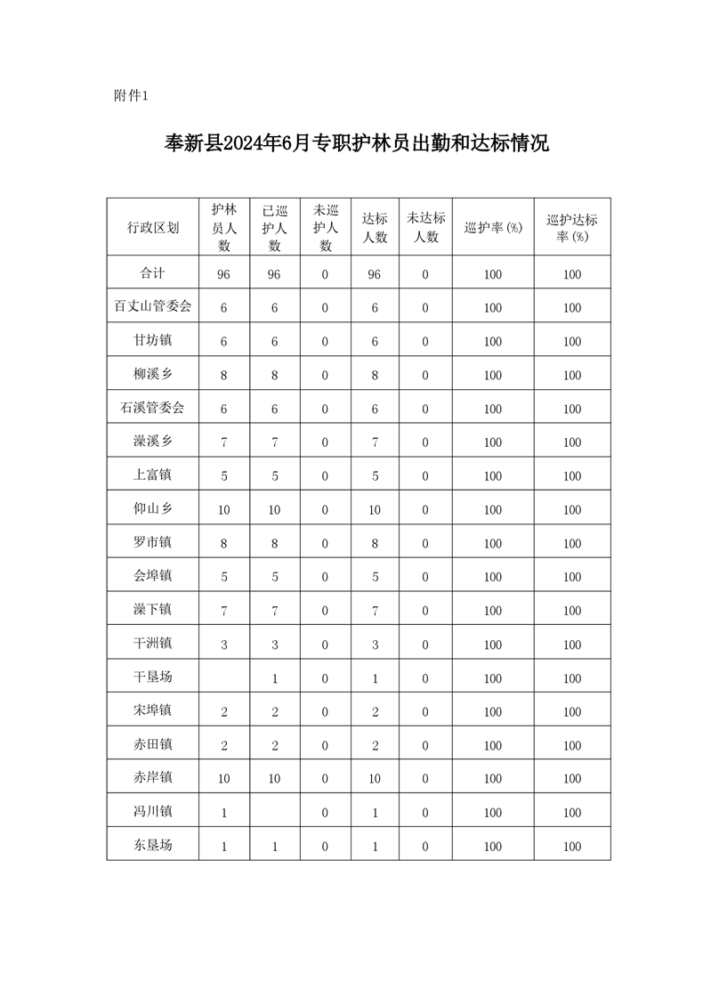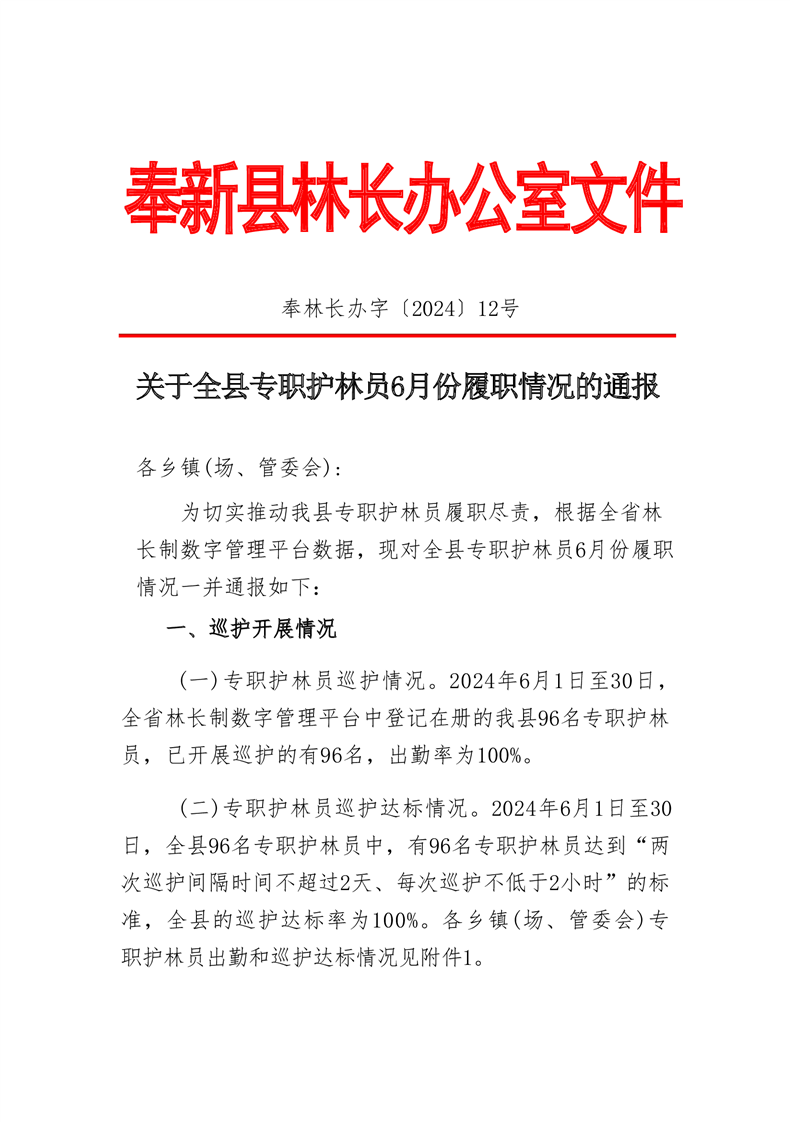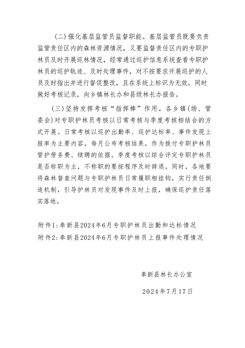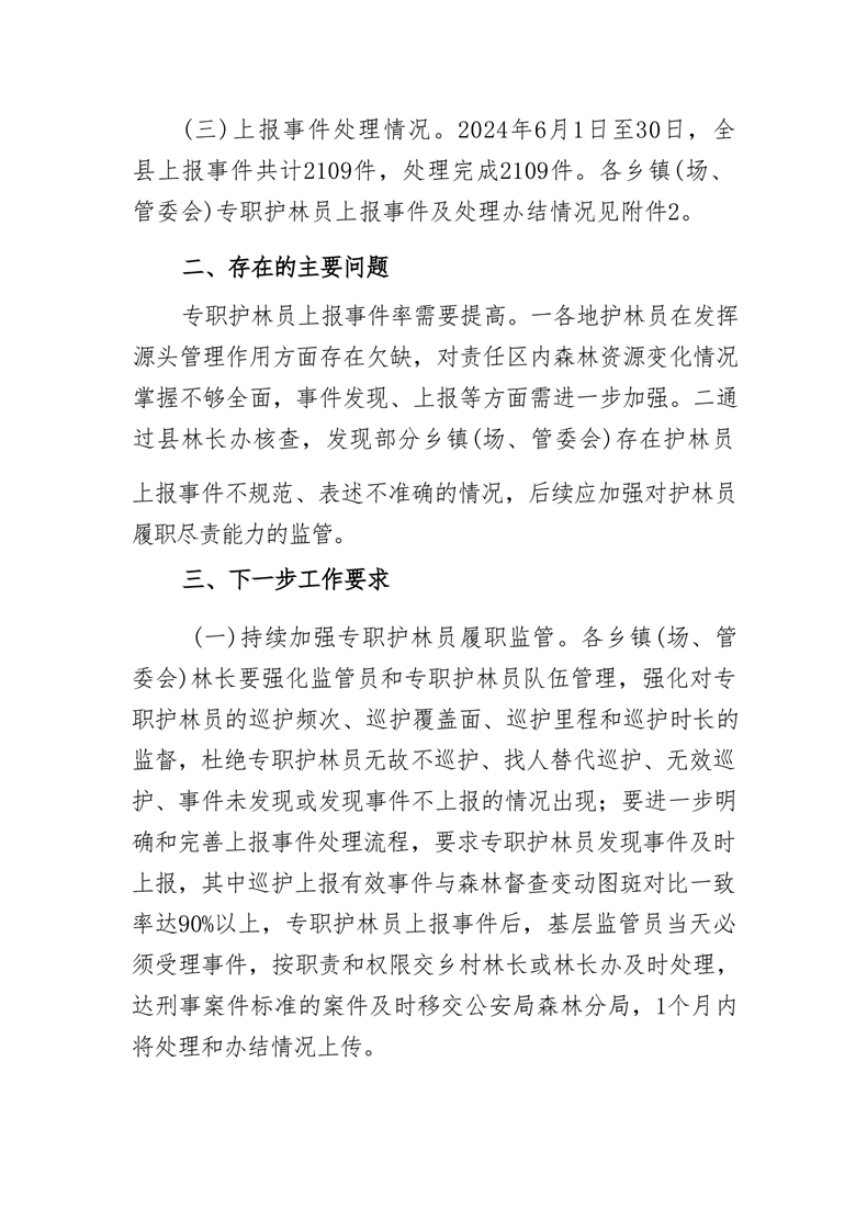 全縣專職護林員2024年6月份履職情況的通報
