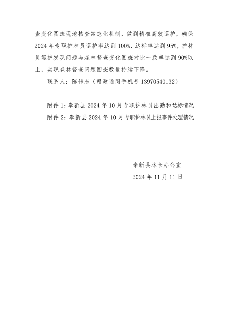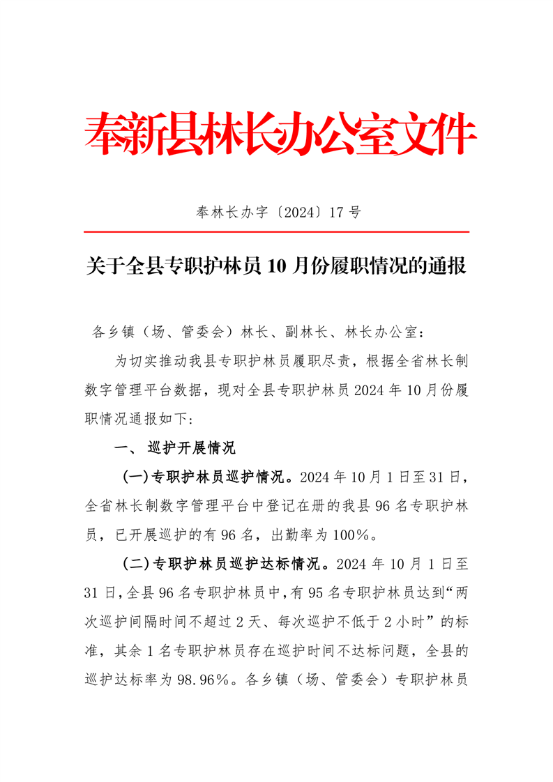 全縣專職護林員2024年10月份履職情況的通報