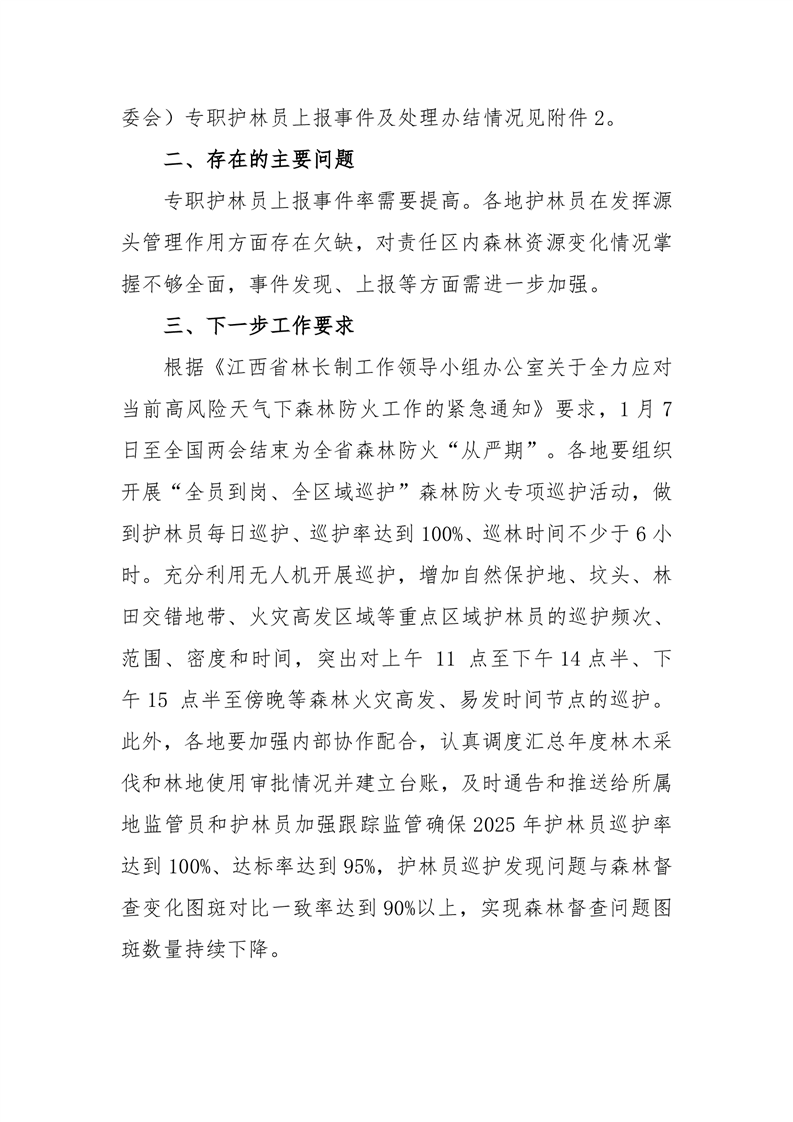 全縣專職護林員2025年1月份履職情況的通報