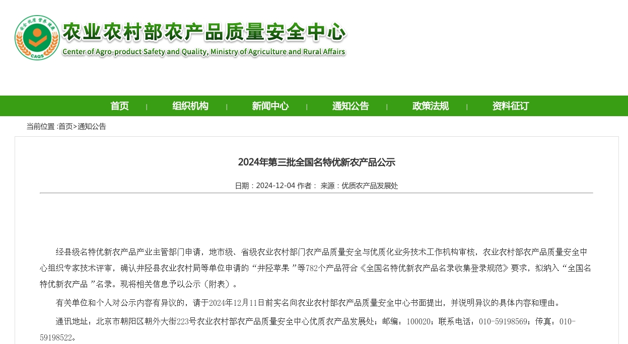 近日,農業農村部農產品質量安全中心公示了2024年第三批全國名特優新農產品名錄。其中“奉新獼猴桃”產品入選。