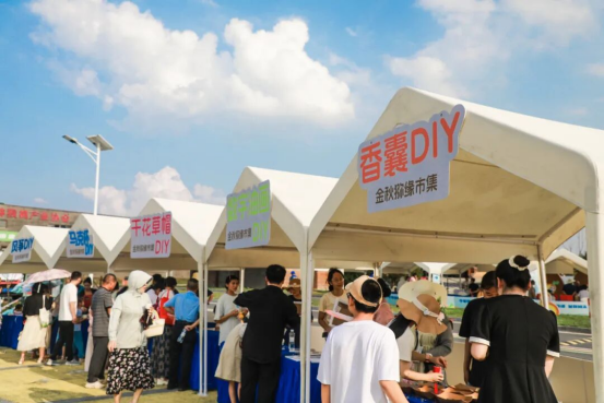 在游客享受精彩節目的同時,精心打造的“金秋獼緣”市集也隨之開市,獼猴桃、大米、果酒、茶葉、辣椒醬等奉新特產呈現在游客面前。數字油畫、干花草帽、馬克杯和風箏等DIY趣味手工游戲也吸引了許多游客動手實操。