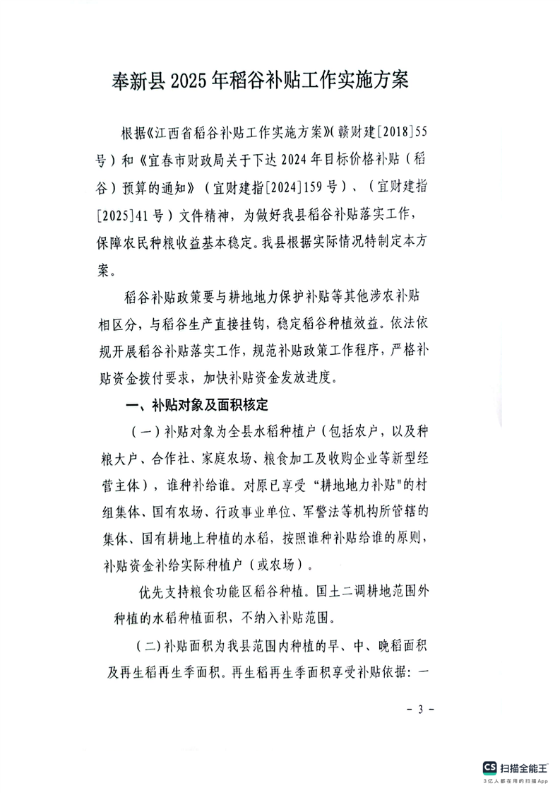 【稻谷補貼申請指南】奉新縣2025年稻谷補貼工作實施方案