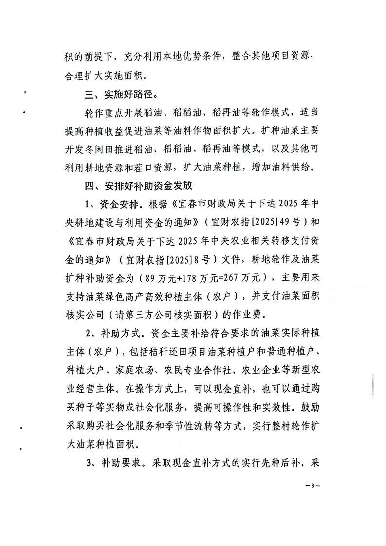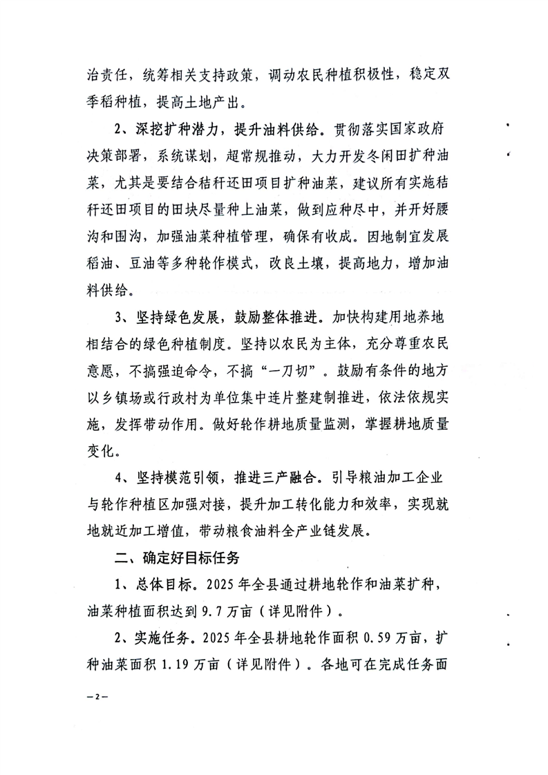 2025 年全縣耕地輪作及油菜擴種實施方案