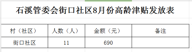 【高齡津貼】石溪管委會街口社區8月份高齡津貼發放表