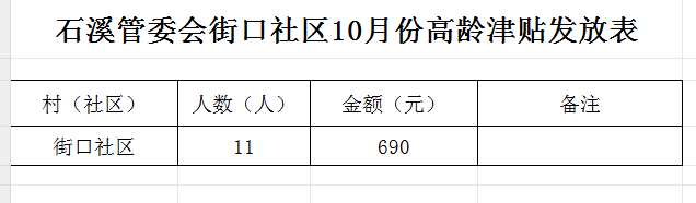 【高齡津貼】石溪管委會街口社區(qū)10月份高齡津貼發(fā)放表