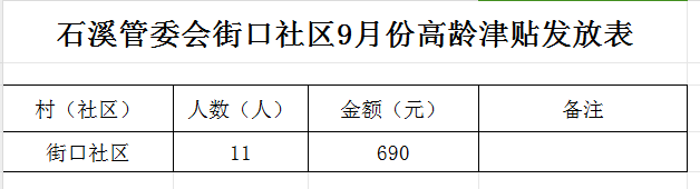 【高齡津貼】石溪管委會街口社區9月份高齡津貼發放表