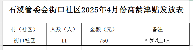 【高齡津貼】石溪管委會(huì)街口社區(qū)2025年4月份高齡津貼發(fā)放表