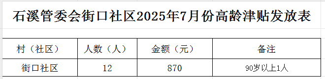 【高齡津貼】石溪管委會街口社區2025年7月份高齡津貼發放表