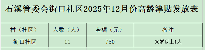 【高齡津貼】石溪管委會街口社區2025年12月份高齡津貼發放表