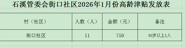 【高齡津貼】石溪管委會街口社區2026年1月份高齡津貼發放表