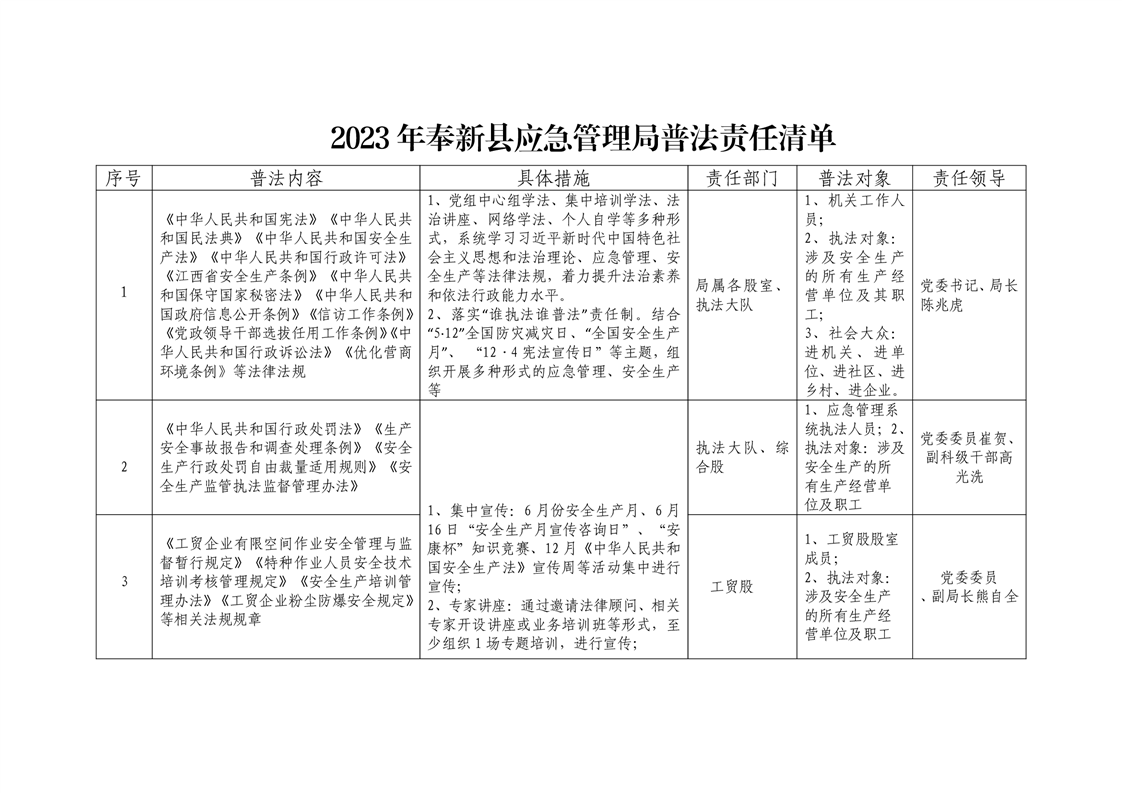 2023年奉新縣應(yīng)急管理局普法責(zé)任清單