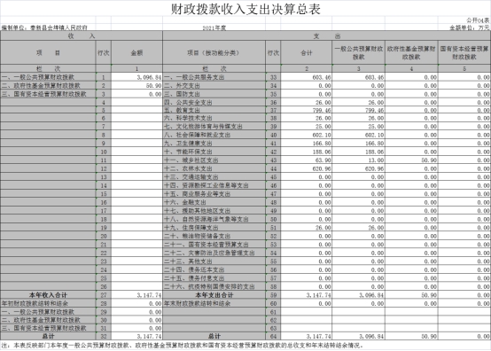 四、財(cái)政撥款收入支出決算總表
