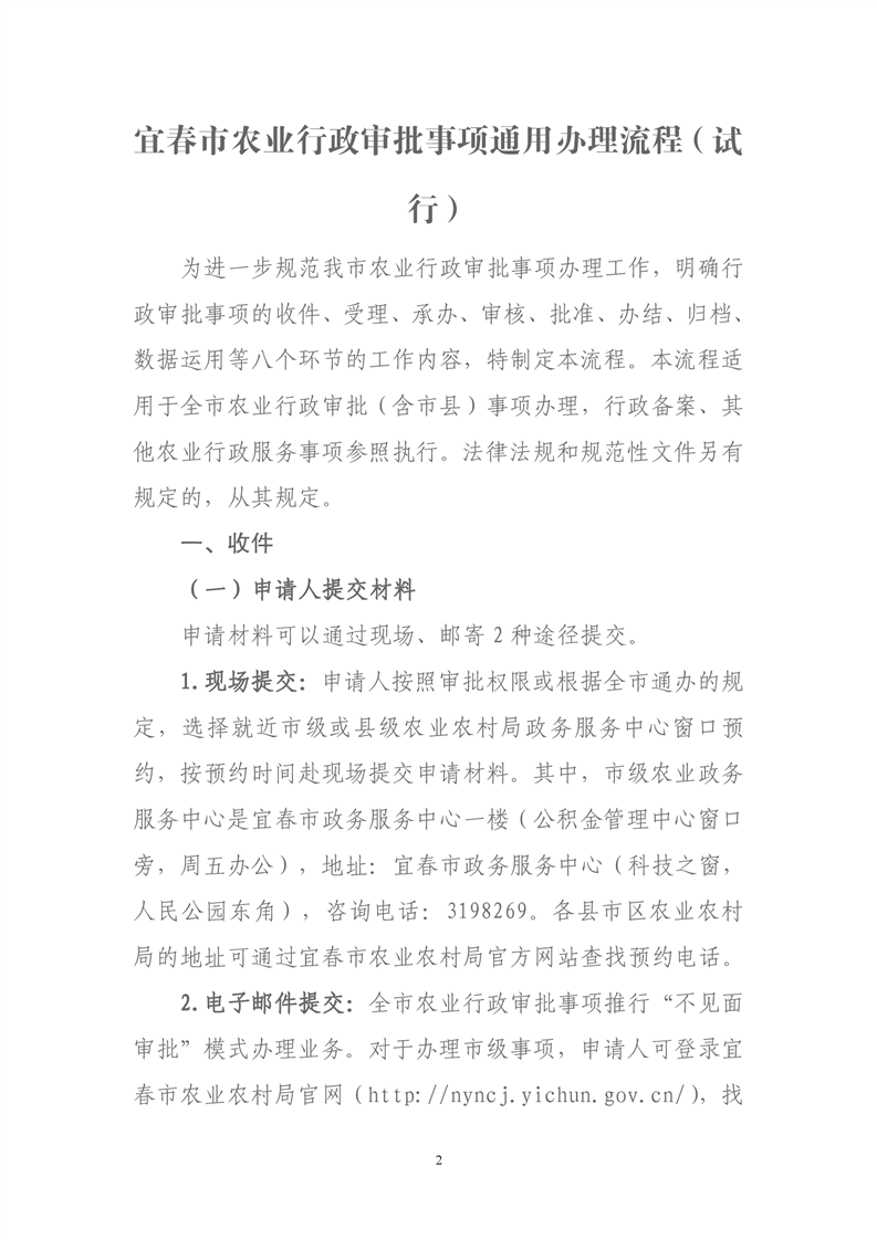 關于印發《宜春市農業行政審批事項通用辦理流程(試行)》的通知