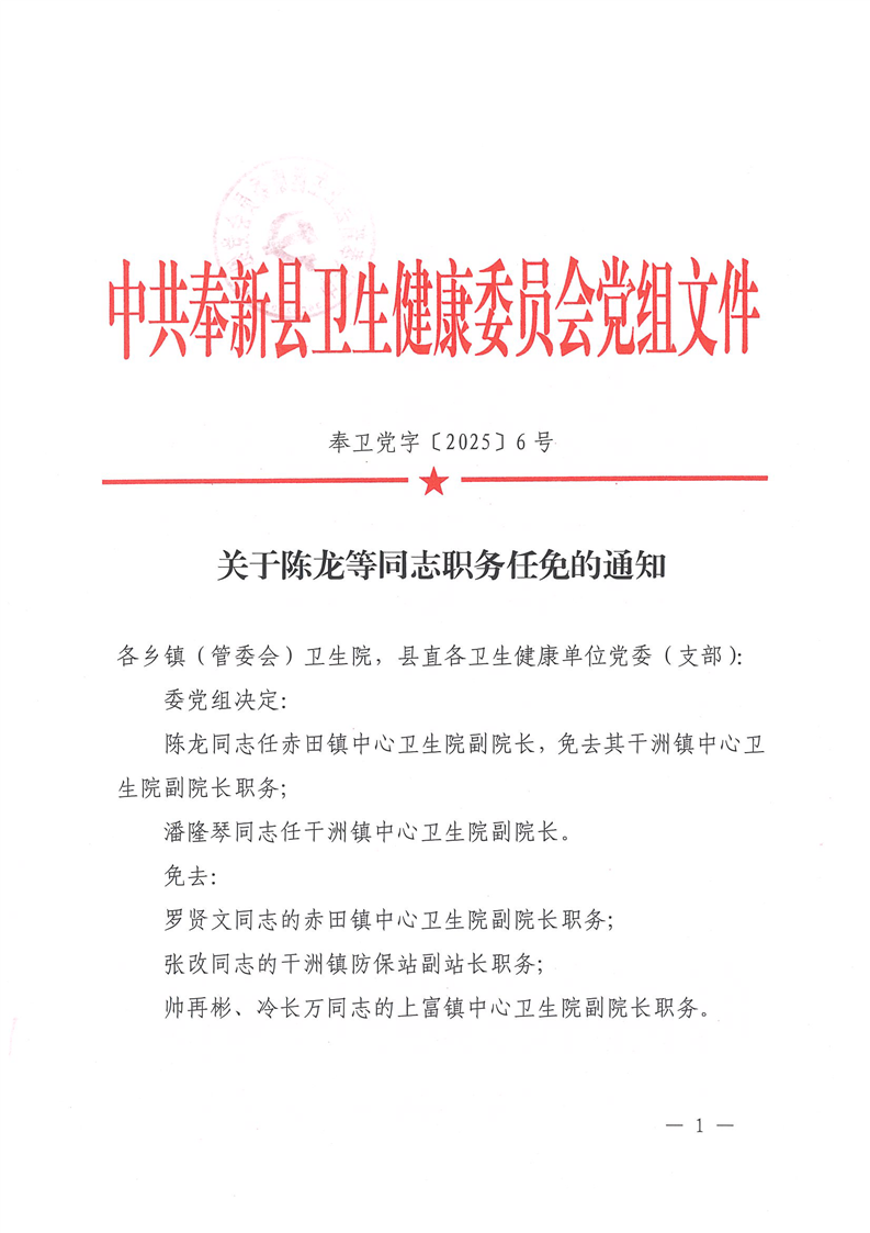 您當前所在位置: 首頁>政府信息公開>政府部門信息公開>縣政府各部門信息公開目錄>縣衛健委>法定主動公開內容>人事信息>人事任免