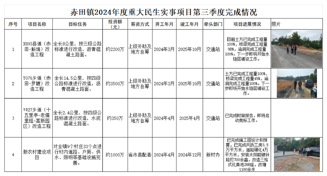 赤田鎮2024年度重大民生實事項目第三季度完成情況