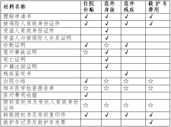 4、救護車費用:因發生意外傷害事故后,需安排救護車的,對因該事故實際支付的、必要的救護車費用,按照每次事故賠償限額500元,全年累計賠償限額2000元給付保險金。