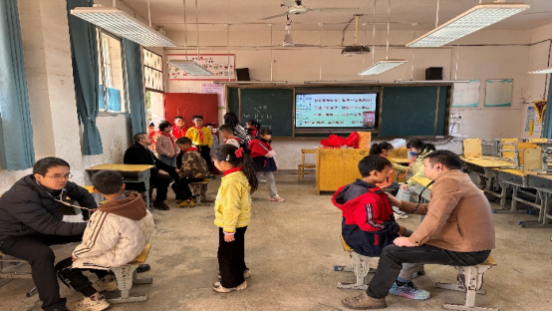 篩查當(dāng)天,赤田中小多媒體教室被設(shè)為臨時(shí)篩查點(diǎn),劃分聽診區(qū)、心電圖檢測(cè)區(qū)與信息登記區(qū)。團(tuán)隊(duì)與學(xué)校提前溝通,按年級(jí)、班級(jí)分批組織學(xué)生參與,班主任全程陪同,不影響正常教學(xué)。