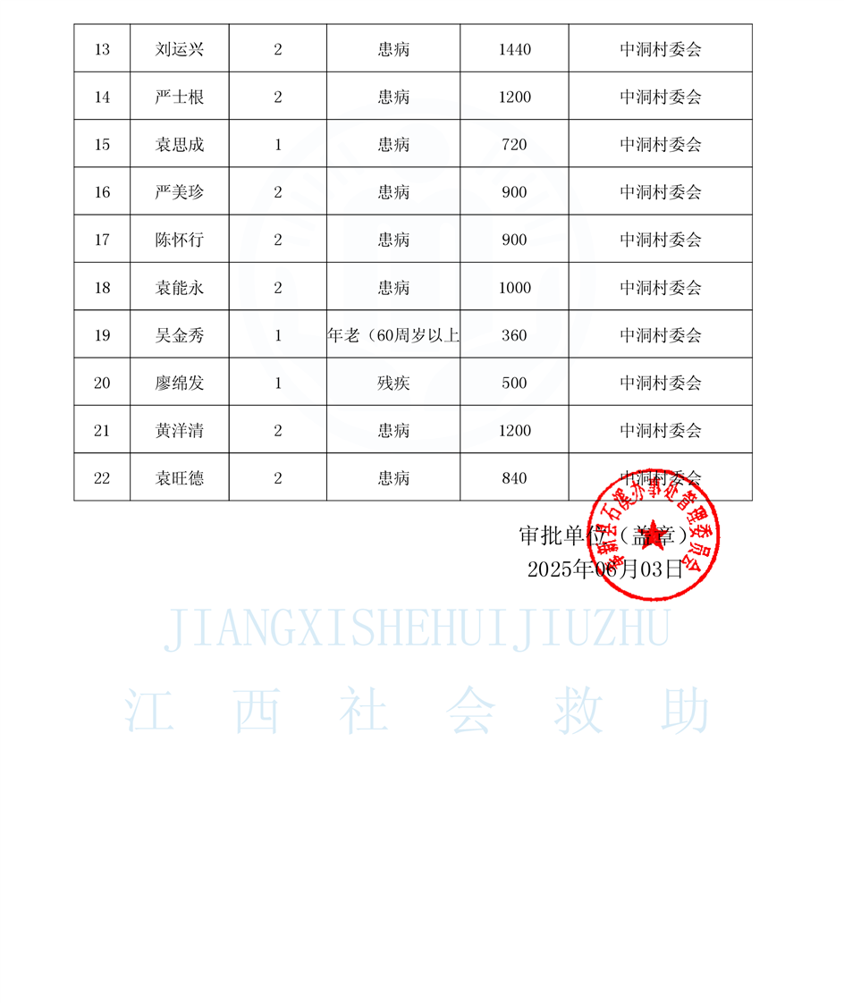 【低保發放】2025年6月石溪管委會各村低保公示名單