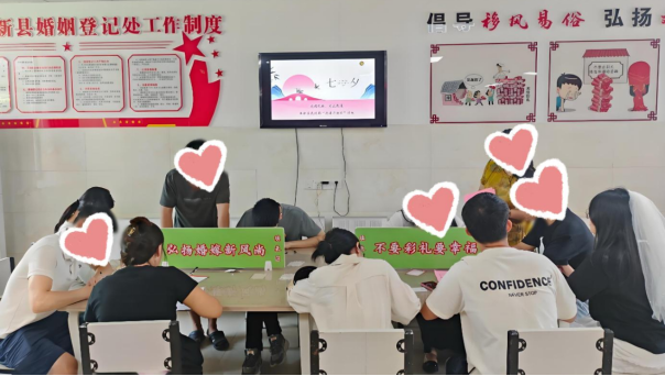 為進(jìn)一步增進(jìn)群眾對(duì)婚姻登記工作的了解,引導(dǎo)年輕人樹(shù)立正確婚戀觀、家庭觀,8月29日,奉新縣民政局婚姻登記處結(jié)合七夕佳節(jié),組織開(kāi)展政府開(kāi)放日活動(dòng),邀請(qǐng)新人們走進(jìn)婚姻登記場(chǎng)所,沉浸式感受文明婚俗新風(fēng)尚。?