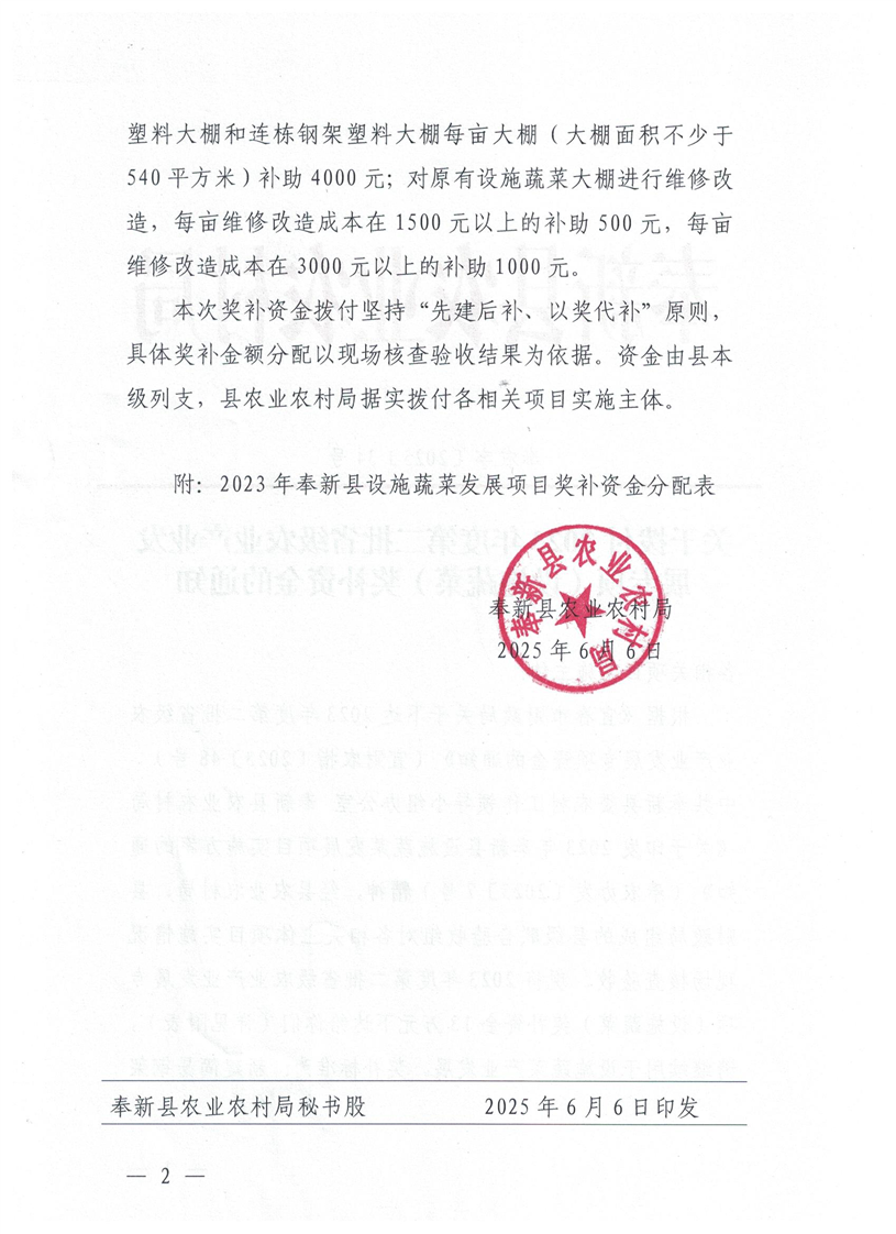 關于撥付2023年度第二批省級農業產業發展專項(設施蔬菜)獎補資金的通知