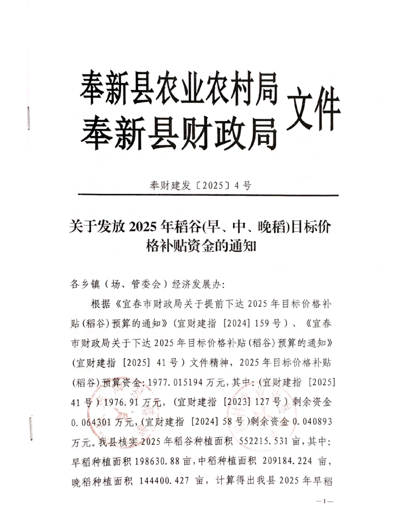 關于發放2025年稻谷(早、中、晚稻)目標價格補貼資金的通知_