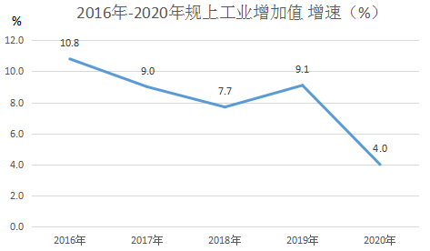 工業生產增速放緩。2020年規上工業增加值同比增長4.0%。營業收入431.3億元,同比增長8.8%,利潤總額44.8億元,同比增長11.4%。