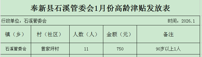 【高齡津貼】石溪管委會(huì)2026年1月份高齡津貼發(fā)放表