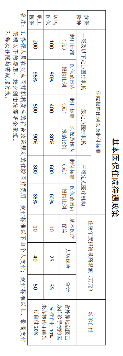 (2)住院待遇:因病住院時,醫保基金按比例支付住院醫療費用;