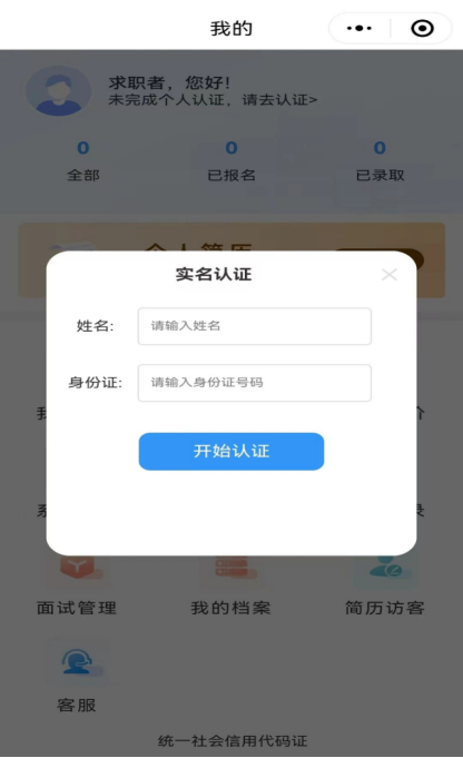 答:如果求職者需要報名崗位,必須先進行個人身份認證。點擊“請去認證”,填寫個人身份信息并人臉識別后即可完成認證。